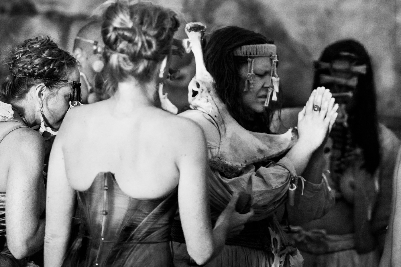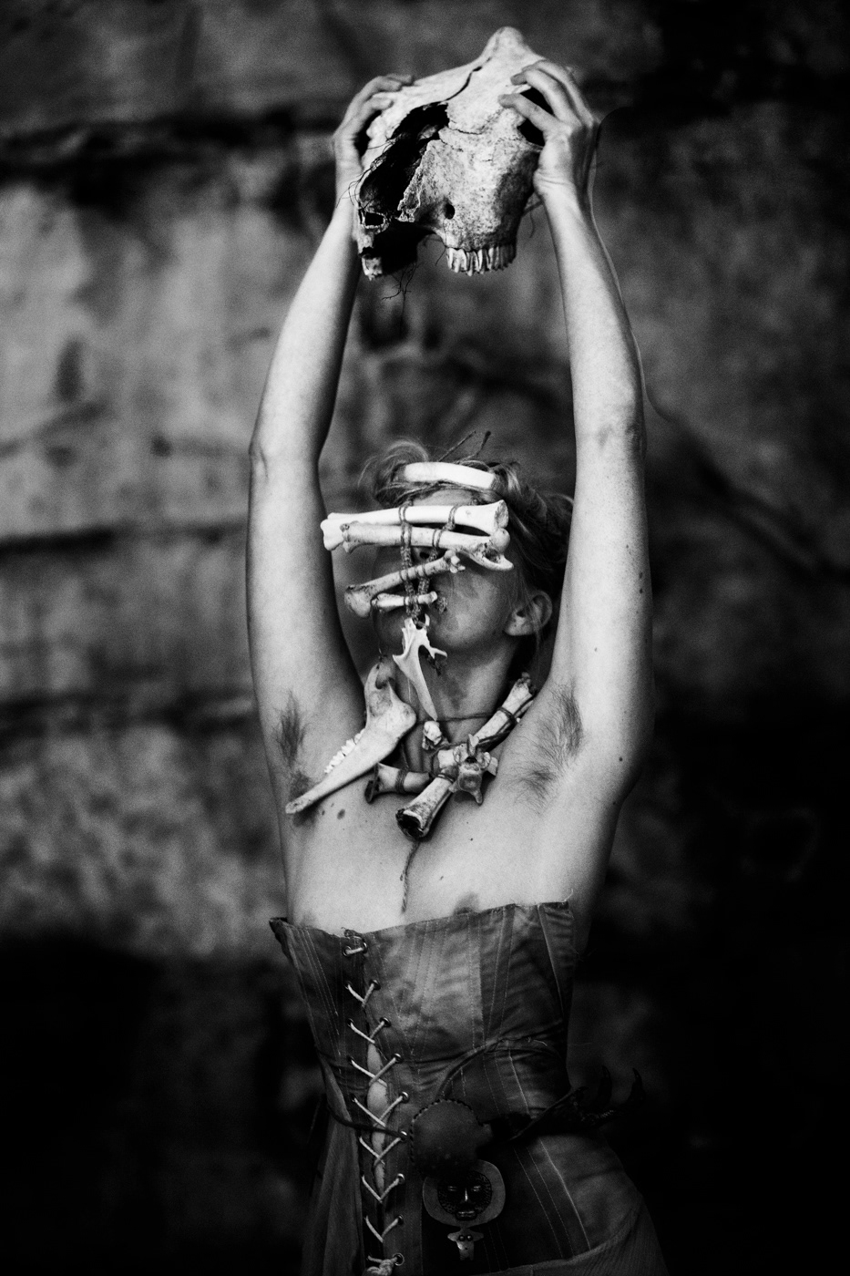 Photos taken during a ritual at Akershus Festning through Kjærsti Øverbø’s idea, concept and direction ‘Naked Nature’. Bone art/ masks by Hole, Hennum and Øverbø, costumes by Müller. Photos by Helene Fjell